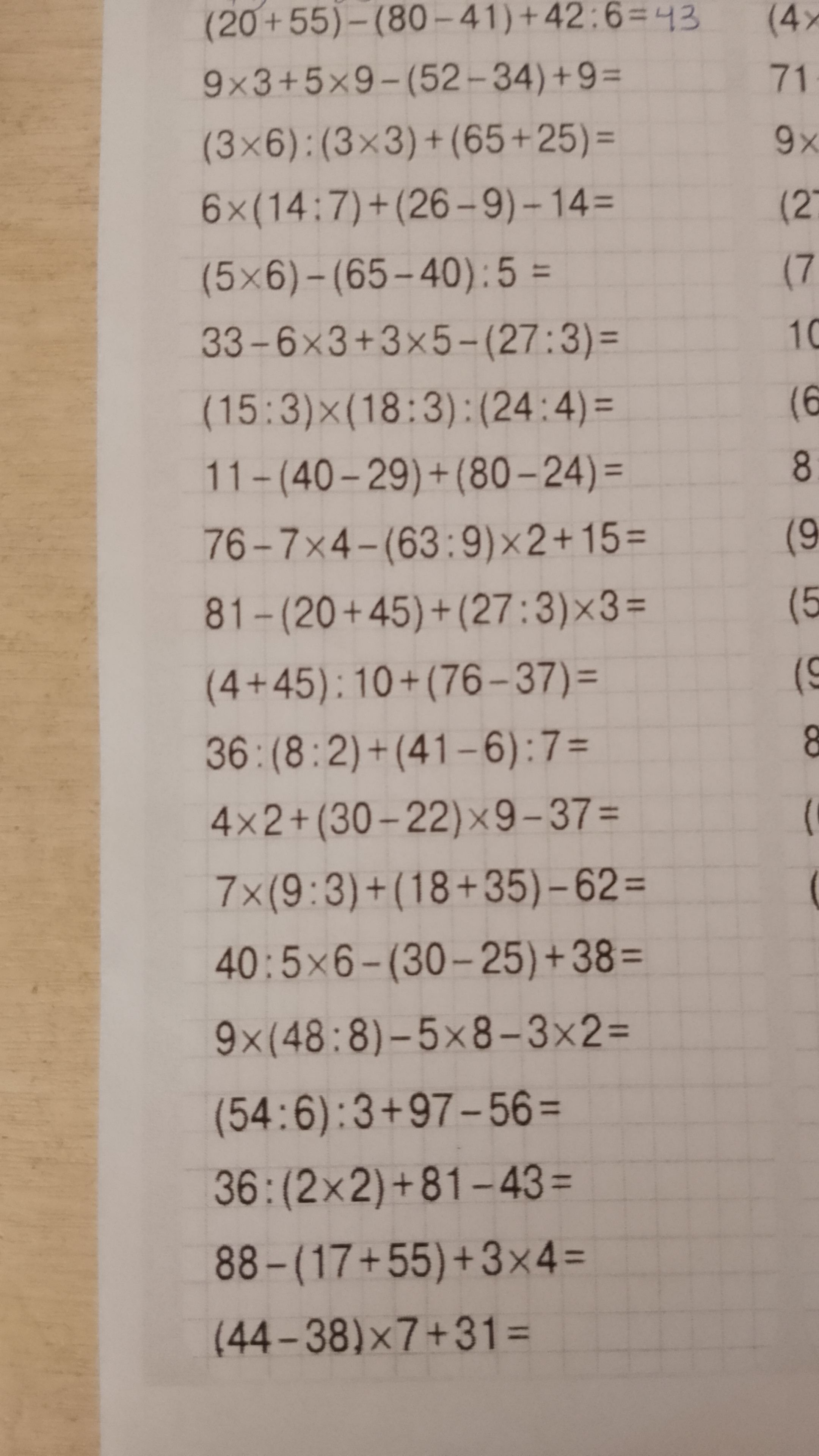 $$ 9 \times 3 + 5 \times 9 - (52 - 34) + 9 = 27 + 45 - 18 + 9 = 72 - 18 + 9 = 54 + 9 = 63 $$