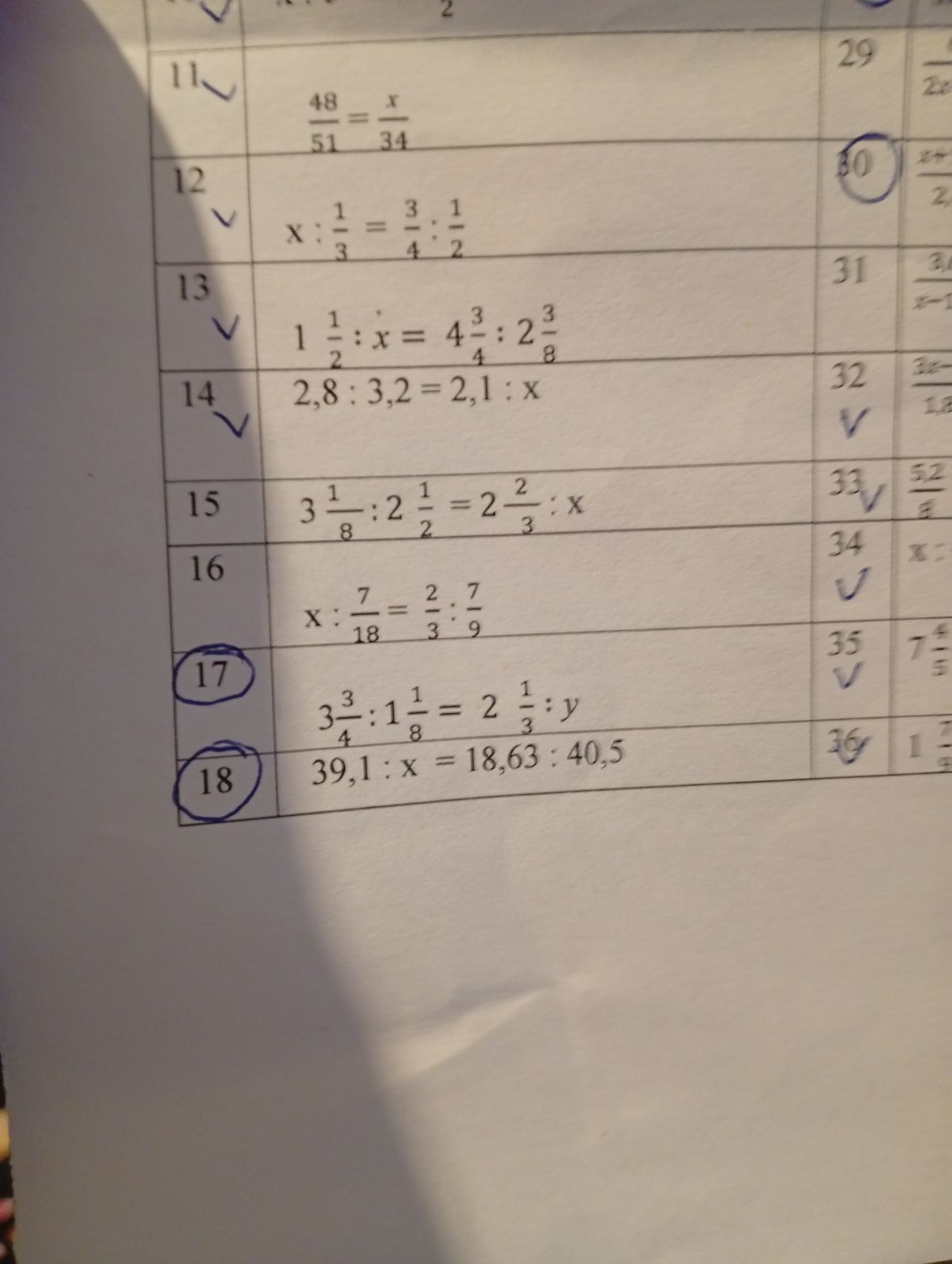 14. пропорция $$2,8: 3,2 = 2,1 : x$$ Чтобы найти неизвестный крайний член пропорции, нужно произведение средних членов разделить на известный крайний член: $$x=\frac{3,2 \cdot 2,1}{2,8}=\frac{32 \cdot 21}{28 \cdot 10}=\frac{8 \cdot 3}{10}=\frac{24}{10}=2,4$$.