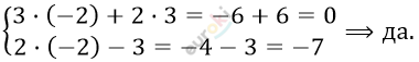 \[\left\{ \begin{matrix} 3x + 2y = 0\ \\ 2x - y = - 7 \\ \end{matrix} \right.\ \text{\ \ \ \ \ \ \ \ }\]