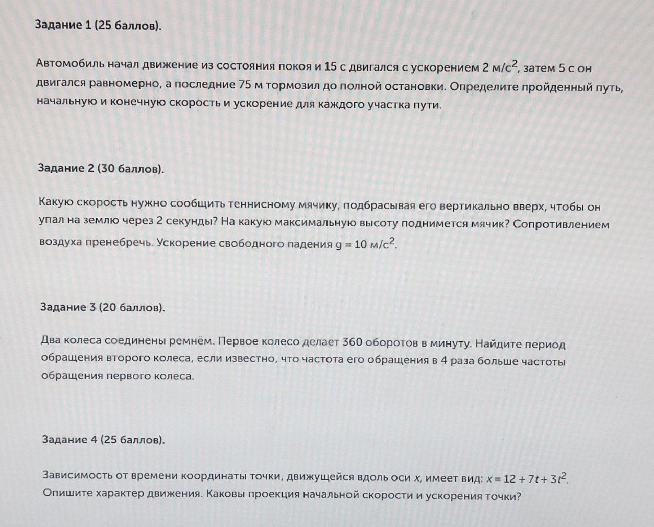 Задание 3 (20 баллов). Два колеса соединены ремнём. Первое колесо делает 360 оборотов в минуту. Найдите период обращения второго колеса, если известно, что частота его обращения в 4 раза больше частоты обращения первого колеса.