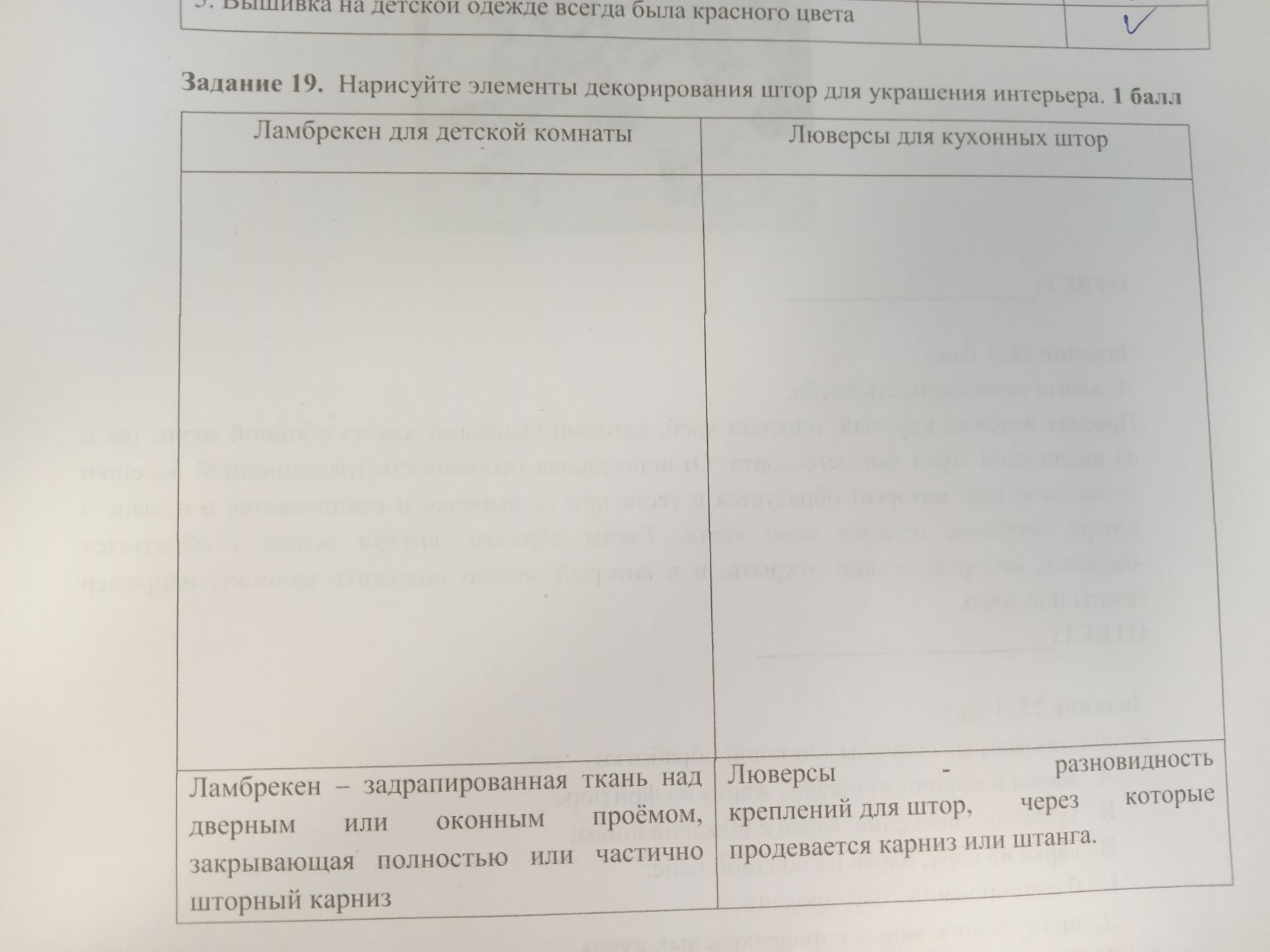Для выполнения задания необходимо нарисовать элементы декорирования штор: ламбрекен для детской комнаты и люверсы для кухонных штор.