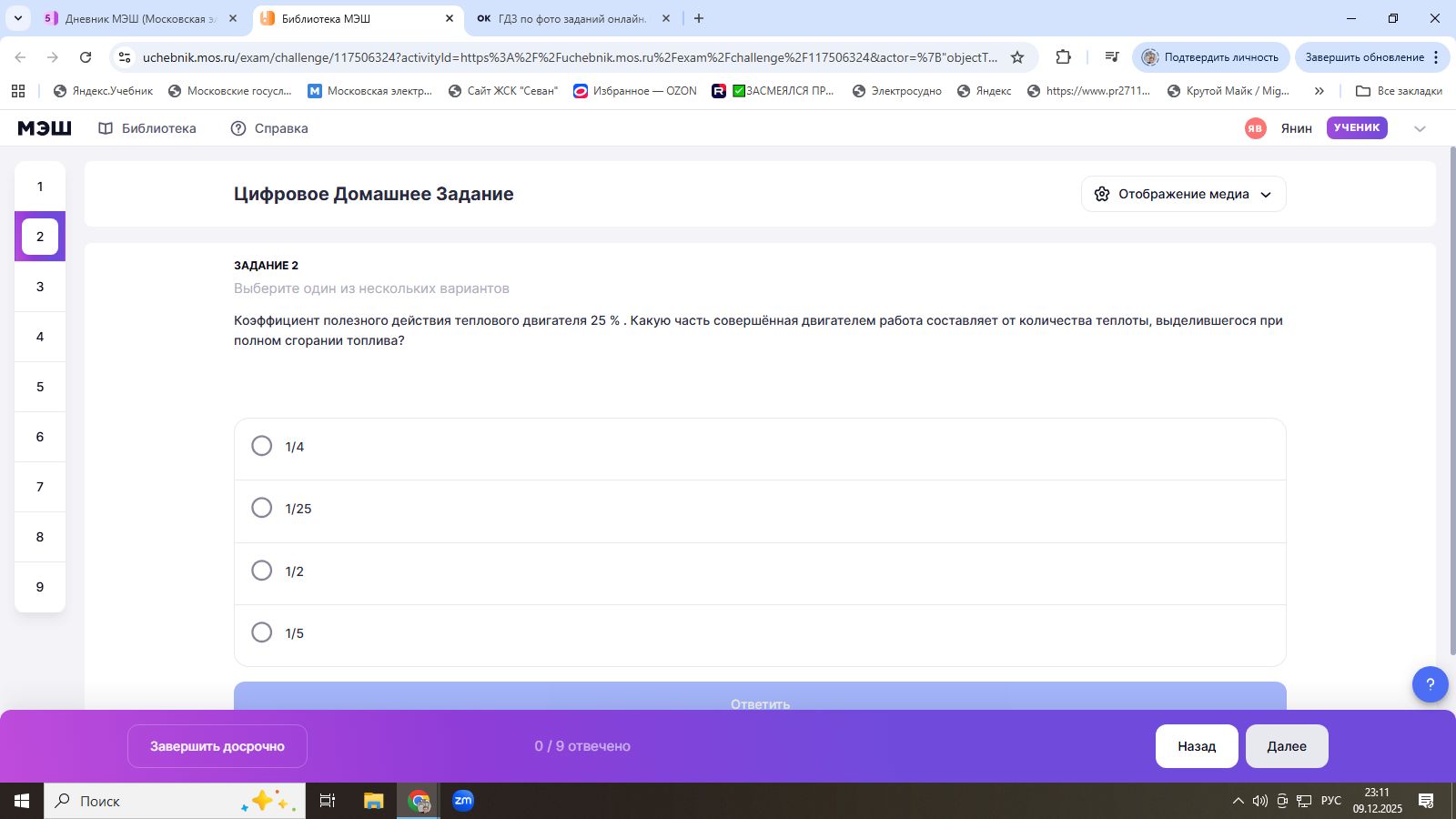 $$25\% = 25/100 = 1/4$$Ответ: 1/4