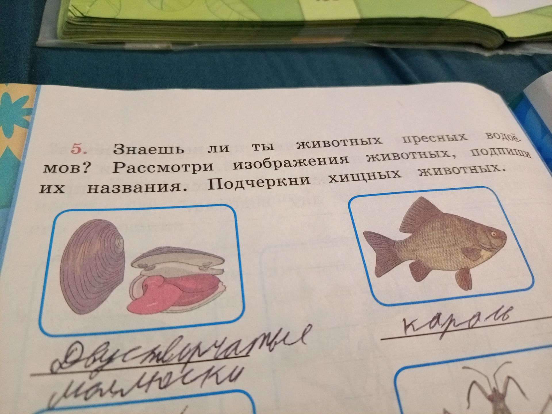 Для выполнения задания необходимо рассмотреть изображения животных, подписать их названия и подчеркнуть хищных животных.